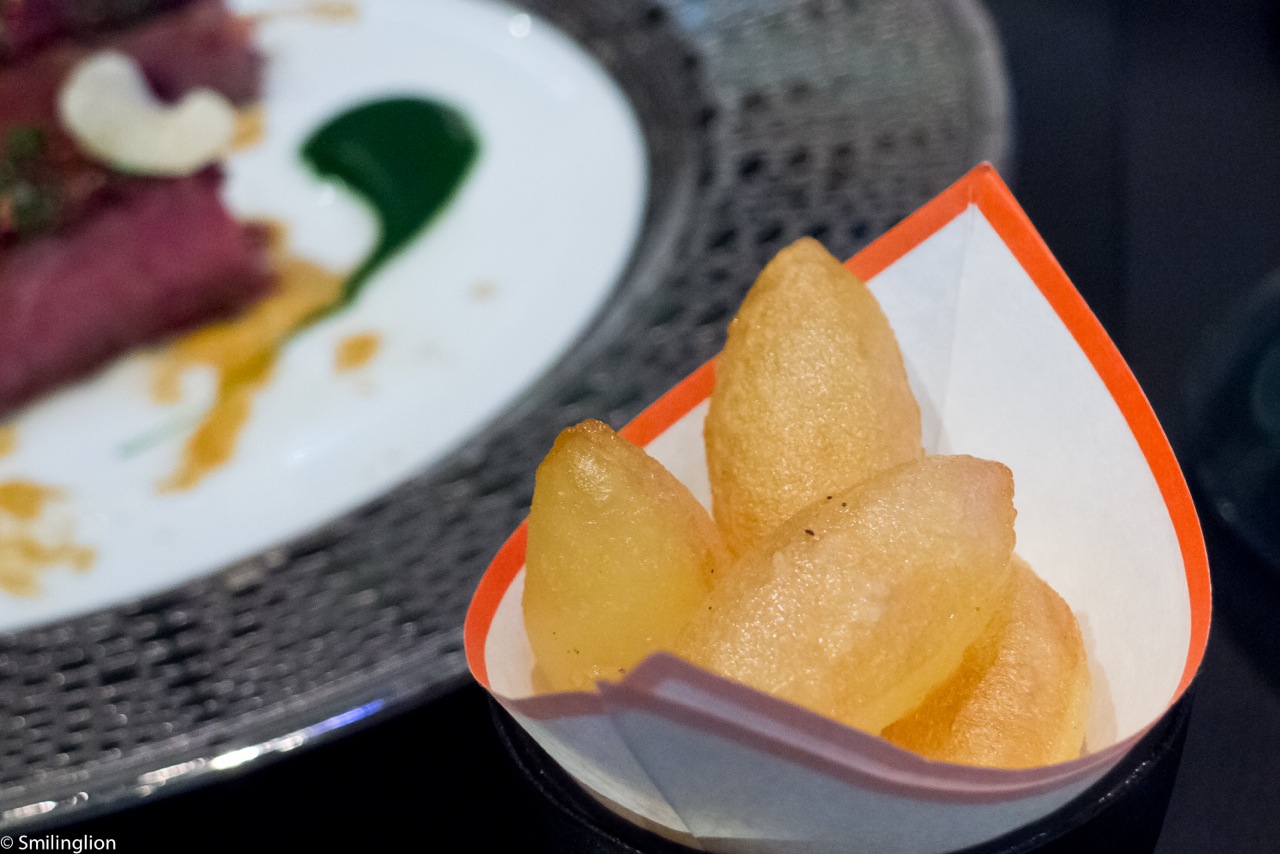 Le Boeuf "Kagoshima" - grilled Kagoshima beef with slow-simmered shallot in red wine served with potatoes soufflés: I had deliberately avoided beef because of my allergies but as it turned out I regretted not making an exception this time. My wife had the classic Robuchon Kagoshima beef which was as good as she had remembered it.